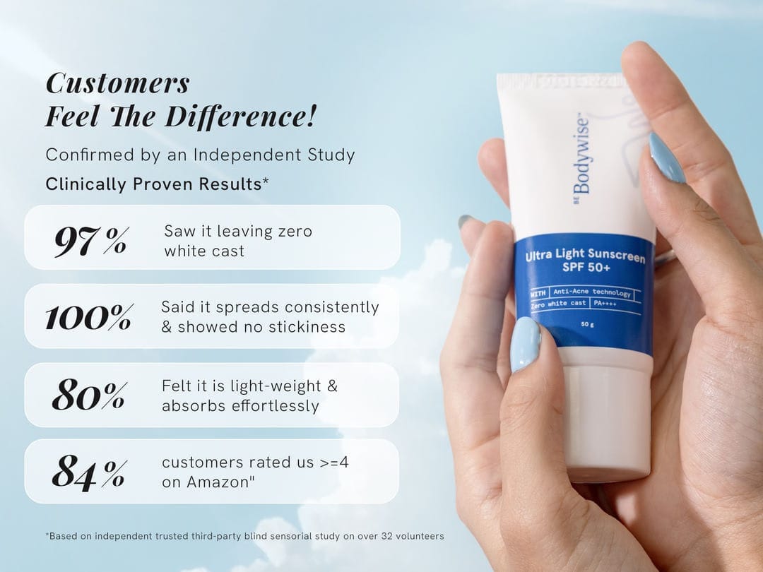 This guide explains what sunscreen is, why SPF50+ is essential, and how Be Bodywise Ultra Light Sunscreen protects against UVA and UVB rays. With an ultra-light, fast-absorbing formula and no white cast, it suits daily use across all skin types, including acne-prone skin.