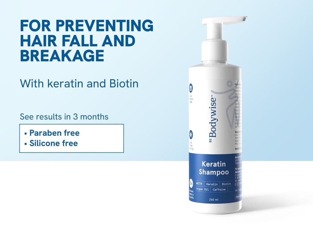 - Use Be Bodywise Keratin Hairfall Shampoo, which is enriched with keratin, biotin & caffeine to support hair follicle strength and minimize breakage.
